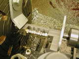 I made all my cuts in .005" deep steps. I felt the extra time was worth spending rather than taking a chance of the shaft spinning in the fixture unexpectedly. I also used a carbide insert type tool and they do not like the constant hammering of an interrupted cut. I was able to complete all the cuts without an insert change increasing my chances of a consistent lobe shape.