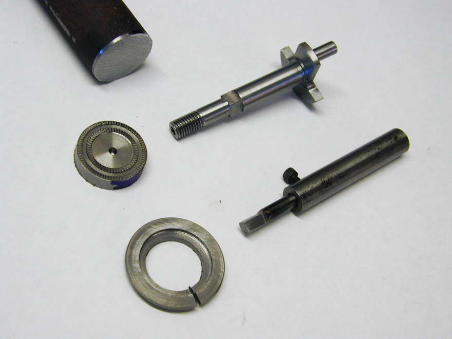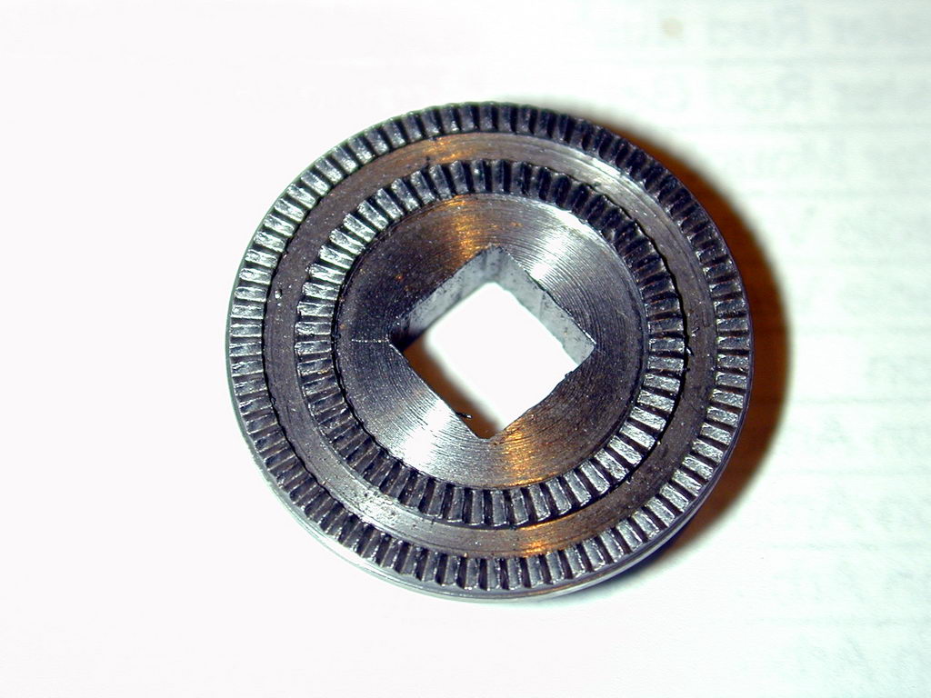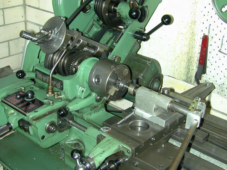 This shot shows the setup used to produce the hole in the drive washer at the top of the page (for the Morton M-1). Both the key-way slotting attachment bolted to the lathe saddle and the indexing attachment fitted to the lathe bull-wheel were made from kits bought from Hemingway Kits in the UK. The indexing attachment is a GHT design with many of the parts removable and common to his saddle mounted Universal Dividing Head. He sure designed great tools and while making the device is quite a project in itself, the end product is worth it as both a tool and a piece of pure model engineering. But neiter are necessary and perfectly acceptable results can be achieved with the lathe alone.